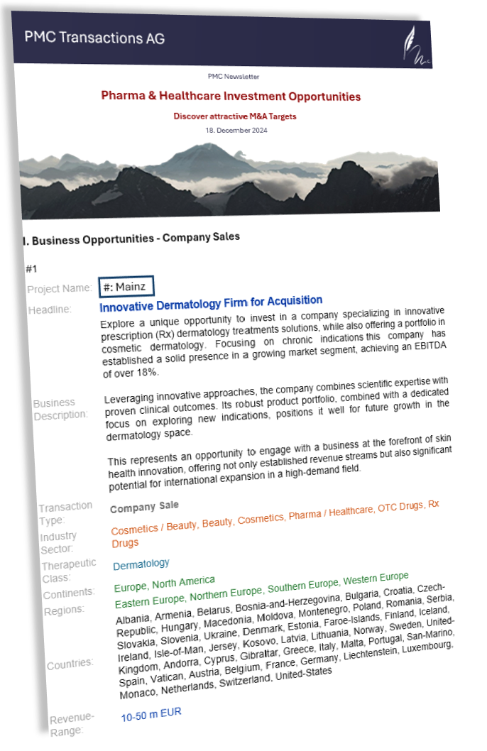 These include promising projects in areas such as specialty pharmaceuticals, consumer health, generics, contract manufacturing and service providers.